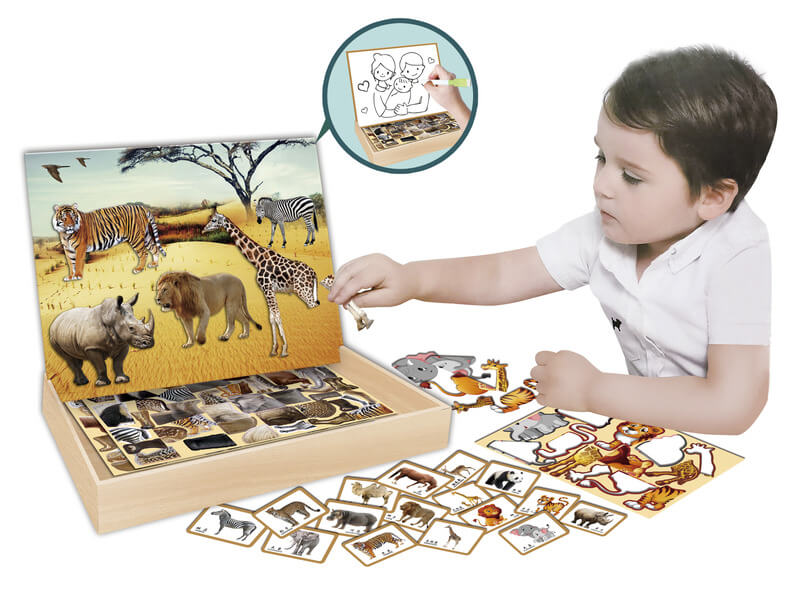 Ez a mágneses puzzle tökéletes ajándék azoknak a gyerkőcöknek, akik szeretik a vadállatokat. De azoknak is, akik nem rajonganak értük. A játék használatával közelebb hozhatjuk hozzájuk a vadállatok varázslatos világát.