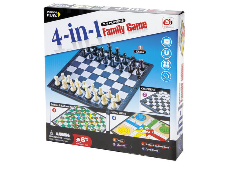 Legyen minél több izgalmas perced szeretteiddel, miközben ezzel a társasjáték-kal játszotok! Tökéletes játékszett otthonra, vagy nyaraláshoz, hiszen egy cso-magon belül 4 darab különböző társasjáték vár arra, hogy családtagjaiddal vagy barátaiddal szórakozzatok és versenyezzetek egy jót. Döntsétek el, hogy melyik játékkal játszanátok szívesen, sakkal, dáma játékkal, létrák és kígyók játékkal, vagy a ki nevet a végén-nel, és ha sikerült megegyeznetek, üljétek körbe a játék-táblát, és győzzön a legjobb!