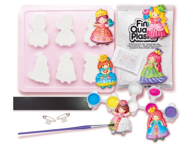 Hercegnős hűtőmágnesek a konyhában, amik még csillognak is! A 4M csillogó hercegnő gipszkiöntő készletben mindent megtalálsz, ami egy gyönyörű hercegnőhöz szükséges! Először keverd el a gipszport kevés vízzel, majd öntsd a formába a kapott masszát. Ha megkötött, csak óvatosan szedd ki a gipszet az öntőformából, és már csak ki kell festened és be kell csillámoznod, hogy kész legyenek a csillogó hercegnők! A hercegnők hátára mágneses csíkot is tudsz ragasztani. A 4M csillogó hercegnő gipszkiöntő készlet tartalma: öntőforma, gipsz, mágnes, tűk, csillám, festékek, ecset.