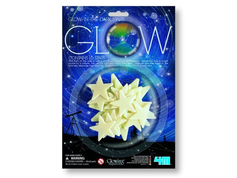 Szeretnél a szobádban is a csillagok fényében gyönyörködni? A 4M sötétben világító csillag készlet elhozza neked az égboltot! A csillagokat fel tudod ragasztani a szobád falára, plafonra, de még akár a szekrények ajtajára is juthat belőlük. Adj nekik fényforrást pár percre, ha ezután lekapcsolod a villanyt, és sötét van, a csillagok világítani fognak. Fénnyel folyamatosan újra tudod tölteni őket, így korlátlan szórakozáshoz juthatsz a 4M sötétben világító csillag készlettel! A 4M sötétben világító csillag készlet 16 darab foszforeszkáló csillagot tartalmaz.