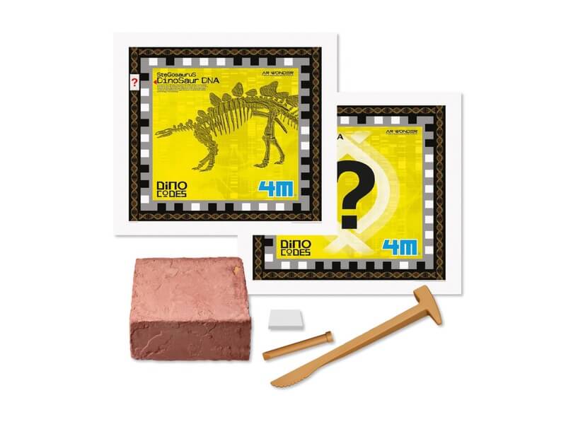 Válj régésszé és dínó DNS-kutatóvá egyszerre! A 4M Stegosaurus DNS készletben egy gipszbe öntött dinoszaurusz csontvázát találod, amit vésővel és kalapáccsal tudsz elővarázsolni. Rakd össze a foszforeszkáló csontokat, majd elemezd a dínó DNS-ét! Ha lefotózod a DNS-t mobileszközöddel, a szobádban is meg tudod jeleníteni a Stegosaurust képernyőn át nézve, sőt még videót is készíthetsz, amit megoszthatsz az interneten! A 4M Stegosaurus DNS készlet csomagolási méretei: 24 x 6 x 22 cm.