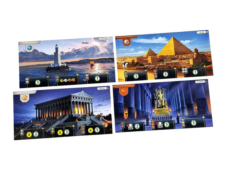 Építs meg minél többet az ókor hét csodájából! A 7 Wonders – 7 Csoda társasjáték a történelem három korába vezet, ahol a hét nagy csodát kell felépíteni. Gyűjts nyersanyagokat, vegyél részt a fejlesztésekben, hozz létre egy nagyon ütőképes hadsereget, és a kereskedelemről se feledkezz meg. Ezekkel a tényezőkkel már jó eséllyel indulhatsz a csodák létrehozásában. A 7 Wonders – 7 Csoda társasjátékkal nyomot hagyhatsz a történelem során, látványos építményekkel! Tartalom: 7 darab csoda játéktábla, 7 darab csodakártya, 49 darab első kor kártya, 49 darab második kor kártya, 50 darab harmadik kor kártya, 46 darab konfliktusjelző, 24 darab 3-as érme, 46 darab 1-es érme, 2 darab kétszemélyes játék kártya, pontozófüzet, játékszabály.