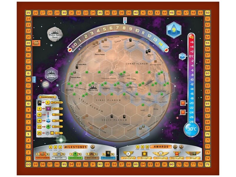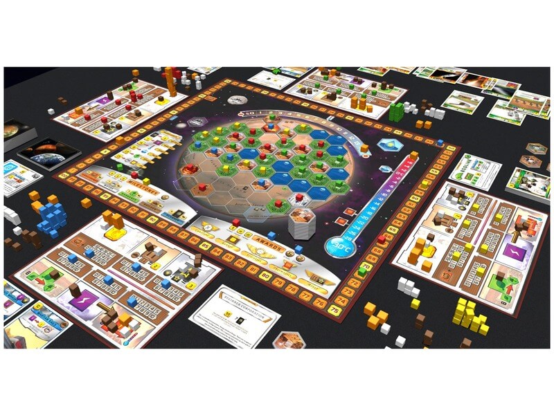A Mars terraformálása társasjáték 2400-ban, a távoli jövőben játszódik, ahol a játékosok óriásvállalatokat irányítanak. Különféle projekteket kell végrehajtani, városokat kell építeni, növényeket és állatokat kell meghonosítani, vagy a Jupiter holdjait kell kibányászni. A világkormány írja ki a feladatokat a Mars hőmérsékletének emelésére, az oxigénszint emelésére és az óceánok mennyiségére is, minden végrehajtott feladat győzelmi pontokat hoz a játékosoknak. A Mars terraformálása társasjáték igényli és fejleszti a játékosok stratégiai érzékét, és az a játékos nyer, aki a legtöbb várost felépíti a legnagyobb infrastruktúrával, tehát a legtöbb győzelmi pontot bezsebeli. A Mars terraformálása társasjáték tartalma: 1 játéktábla, 5 játékos tábla, 17 óriásvállalat kártya, 208 projekt kártya, 8 referencia kártya, 200 játékos jelölő, 200 nyersanyag jelölő, 3 játéktábla jelölő, 9 óceán lap, 60 zöldterület és város lap, 11 speciális lap, 1 első játékos lap, játékszabály.