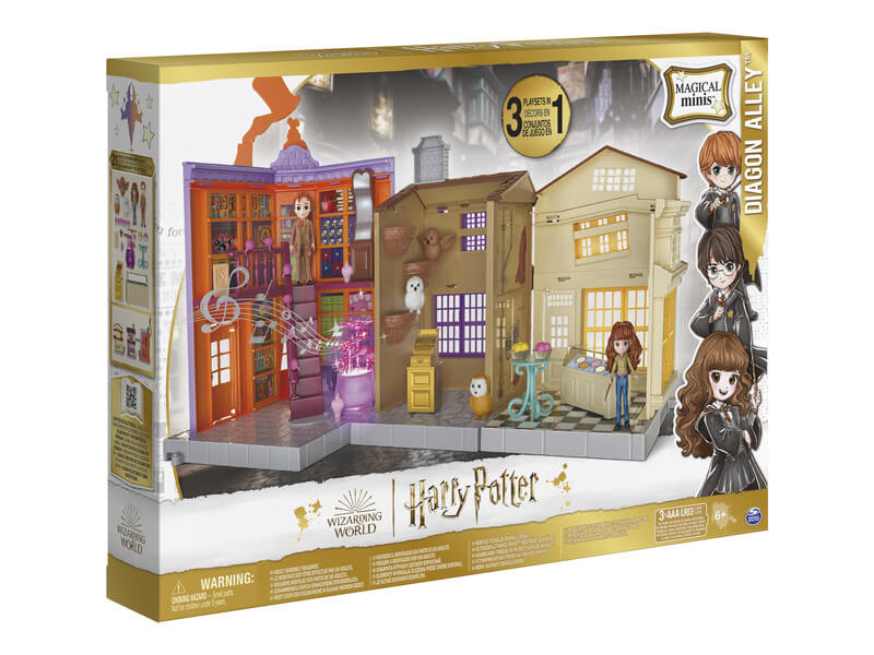 Abszol út játékszett Éleszd újra kedvenc Harry Potter jeleneteidet a Varázsvilág Varázslatos Minis Abszol út játékkészlettel! A Weasleys varázslóbüfé, az Eeylops Bagolybolt és Florian Fortescue fagylaltozója, valamint az exkluzív 3 hüvelykes Hermione Granger és Fred Weasley figurák, 21 kiegészítő, fény- és hangjátékok teszik a Abszol utat a varázsvilági kalandok tökéletes helyszínévé! Kösd össze az üzleteket, ahogy csak akarod, és játssz. Segíts Frednek feltölteni a polcokat, és nyomd meg a viccbolt padlóján lévő gombot, hogy aktiváld a Szerelmi bájital hanghatásait és fényeit! Hermione baglyot választhat az Eeylops Bagoly Emporiumban, mindkét karakter fagylaltos finomságokat fogyaszthat a fagyasztóból Florian Fortescue Fagylaltozójában! Bővítsd a varázsvilágot a Magical Minis Abszol út játékkészlettel! 3 db AAA elemmel működik, nem tartozék!