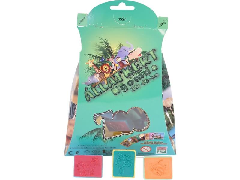 Nyomdázás során a gyerekek megismerik az állatok nevét, jellemzőit. A tevékenység sok alkalmat kínál a beszédfejlesztésre. Az elkészült nyomatok kiszínezhetők, kivághatók. A nyomdázás a szókincs, fogalomkincs bővítésénél használható és az állatos nyomda környezeti ismeretek fejlesztésére is alkalmas. A játék során kinyomtatott állatképek kiszínezhetőek és kivághatóak. A dobozban található ajándék állatos momóriakártya jó szórakozást ígér felnőtteknek ,gyerekeknek egyaránt A játék 30 db nyomdatappancsot, 1 db nyomdafesték tálkát, 1 db filcbetétet, 28 db memóriakártyát (ajándék).
