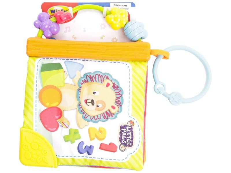 Lapozgasd a könyv lapjait, ismerkedj az állatokkal! Az Állatos textilkönyv bébijáték egy élénk színű, babakocsira és kiságyra is rögzíthető mini könyv, szövet borítású lapokkal, állatos és számos mintákkal. A könyv egy csörgőt is tartalmaz, a játék rágókaként is használható, az Állatos textilkönyv bébijáték fejleszti a picik tapintását, és megismerteti őket a számokkal, különböző állatfigurákkal. Az Állatos textilkönyv bébijáték méretei: 20 x 14 x 2 cm.
