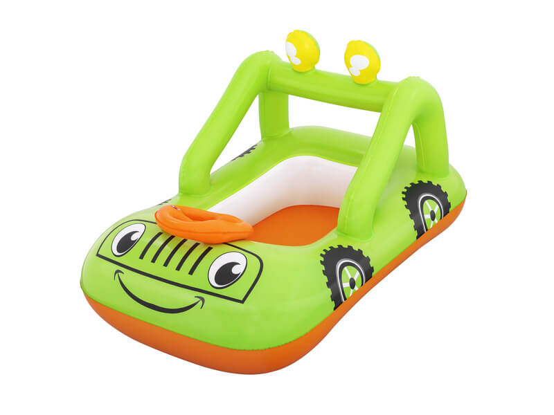 Autós és repülős bébi csónak Kétféle változatban. Kérjük hogy a megjegyzésbe tüntesse fel, hogy melyik változatot kéri. Gyermek Bestway felfújható csónak. Barátságos és színes járműgrafikával és beépített interaktív játékfunkciókkal felszerelve ez a csónak leköti kicsinyét, miközben a medencében, a tóban vagy az óceánban mozog. A baba remekül fogja érezni magát a pancsolásban. Ha legközelebb a baba vízi kalandra szeretne menni, ne felejtse el magával vinni. Az autó mérete: kb 92 x 61 cm. A repülő mérete: kb 109 x 97 cm. Összetétel: vinyl.