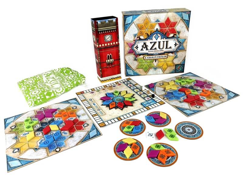 Építkezz és nyűgözd le a királyt! Az Azul: A királyi pavilon társasjáték könnyedén fejleszti a logikai gondolkozást. A játékban a lehető legminőségibb alapanyagokból építheted fel saját épületeidet, köztük az elhunyt király kérését a királyi pavilont. Portugália jellegzetes motívumai és a sok színű csempék mind segítségedre lesznek abban, hogy a legelőkelőbb személyek számára építs fantasztikus otthonokat. Ám vigyáznod kell, az építőanyagok pazarlása pontlevonással jár. Mérkőzz meg barátaiddal vagy épp családtagjaiddal és döntsétek el, ki a legügyesebb építőművész. A kreálmányokat a pontozó tábla segítségével tudjátok összehasonlítani. Akinek a legtöbb pontja lett, az nyűgözte le a legjobban a királyi családot, ezzel megnyerve a játékot. Az Azul: A királyi pavilon társasjáték tartalmazza a 4 db játékostáblát és az építkezéshez szükséges sok-sok kiegészítőt. A játékot összesen négyen lehet játszani. A társast 8 éves kortól ajánljuk.