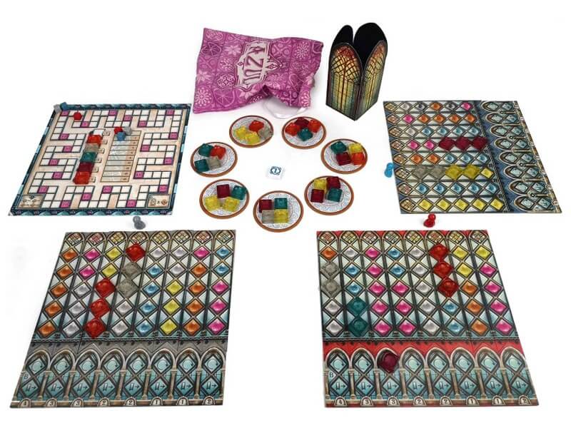 Válj Portugália leghíresebb üvegművészévé az Azul: Sintra üvegcsodái társasjátékkal! I. Mánuel király csodaszép színekben pompázó üvegtáblákat terveztetett a sintrai királyi palotájára, össze is hívta a legjobb mesterembereit. Az üvegfújók túlóráznak, jobbnál jobb alapanyagokat hozva létre, de még mindig több az üvegművész, mint a fúvók, így nagy a harc a kész táblákért. Próbálj meg lecsapni a szükséges darabokra, de vigyázz, ne pazarolj, mert nem csak a pénztárcád, de a többi mester miatt is bánhatod majd a pontvesztésedet! Vajon sikerül elsőnek létrehoznod a díszes ablakokat? Az Azul: Sintra üvegcsodái társasjáték 9 darab üveggyárat, 4 darab palota részletet, 32 darab üvegminta csíkot, 4 darab bábut, 8 darab jelölőt, 100 darab üvegkockát, 1-1 darab pontozótáblát, kezdőjátékos lapot, zsákot, üvegtornyot, és játékleírást tartalmaz. A termék csomagolásának méretei: 26 x 7 x 26 cm. A játékot 8 éves kortól ajánljuk, 2-4 fő részére.