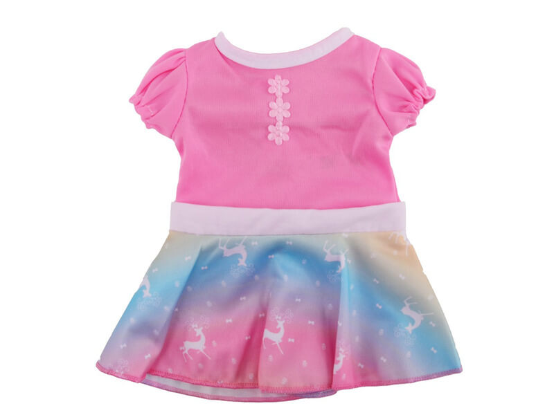 Öltöztesd be a nagyobb játékbabát színes ruhába! A Babaruha 40-45 cm-es játékbabához tarka, élénk színű babaruha, amivel divatossá teheted a játékbabádat! A ruha puha textilből készült erős varrásokkal, a készlet egy papír vállfát is tartalmaz, amivel simán tudod tartani az öltözéket. A Babaruha 40-45 cm-es játékbabához zacskós csomagolású. A játékok külön kaphatóak.