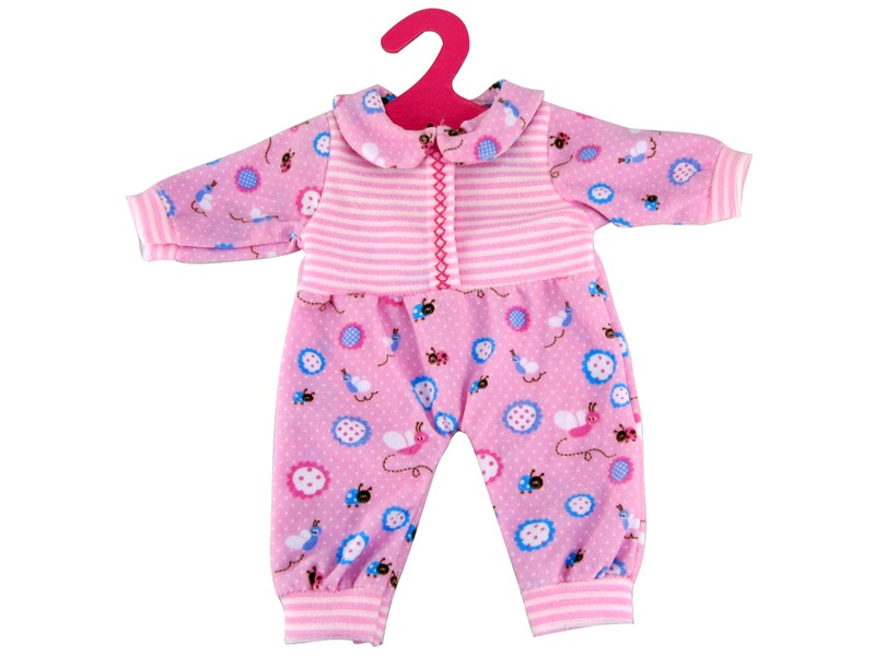 Adj a játékbabádra egy kényelmes kezeslábast! A Babaruha 46 cm-es babához egy vastagabb szövetből készült kezeslábas, rózsaszín színben, fehér pöttyökkel és bogár mintával. A ruhát könnyen fel tudod adni a babára, ráadásul a mosógépben is ki lehet mosni. A Babaruha 46 cm-es babához hossza: 30 cm.