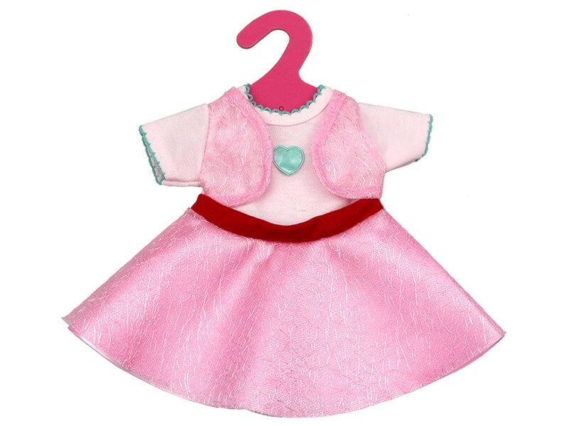 Adj a kedvenc játékbabádra egy elegáns rózsaszín ruhát! A rózsaszín Babaruha játékbabához egy puha, fényes szövetből készült ruha, mellénnyel, szoknyával és piros övvel. A ruhát könnyen rá tudod adni bármelyik 41 cm-es játékbabára, fontosabb alkalmakra érdemes a ruhakölteményt felvennie. A rózsaszín Babaruha játékbabához készlet egy karton vállfát is tartalmaz. Csomagolás méretei: 23 x 26 cm.