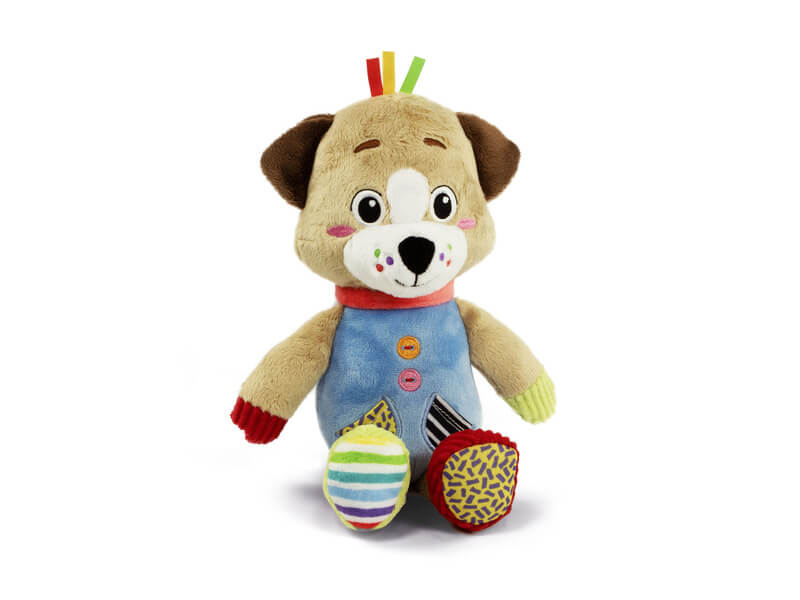 Pihe-puha plüss kutyus gyermeked hű társa lehet. A plüss különböző textúrájú anyagokból készült, így a tapintás során remekül fejleszti gyermeked szenzoros képességét.