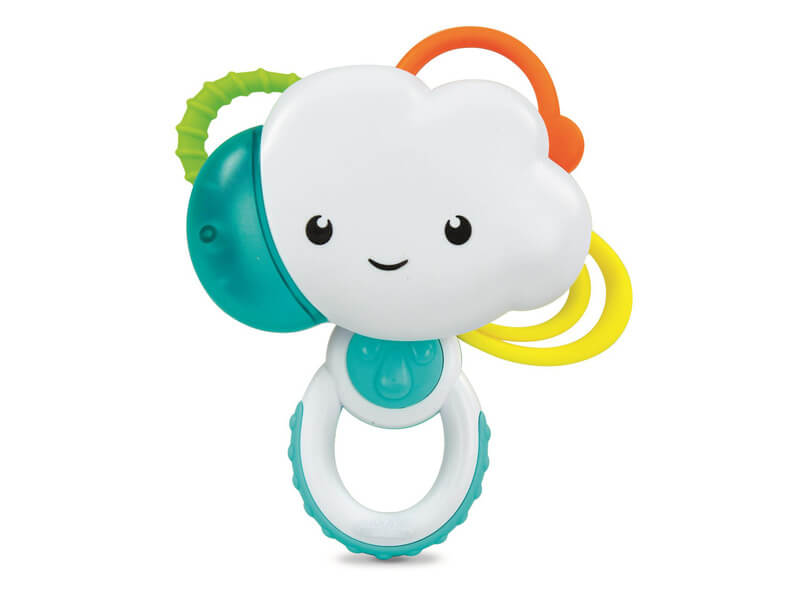 Felhő alakú baba csörgő, mely mozgatáskor eső hangot hallat. Kialakításának köszönhetően a csörgő biztonsággal használható a legkisebbek számára is.