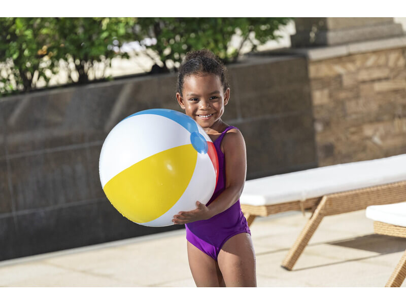 Labdázz a medencében a klasszikus, csíkos strandlabdával! A Csíkos strandlabdával minden izgalmas vizes labdajátékot kipróbálhattok, a kidobóstól egészen a vízilabdáig! A labdát biztonsági szelepen át tudod felfújni. Felfújt átmérő: 51 cm.