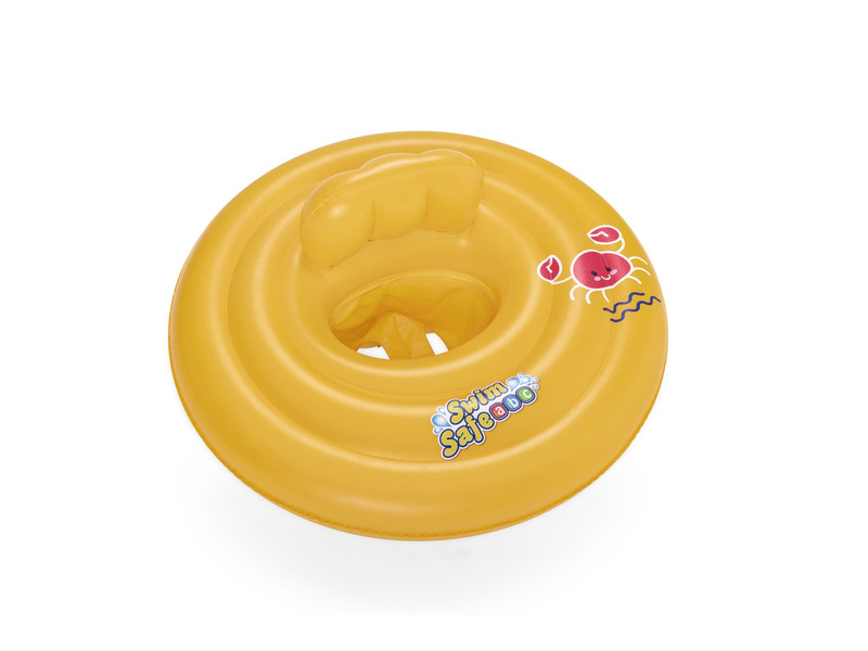 Úsztasd biztonságban a picit a felfújható sárga babaúszókában! A Baba úszóka 0-1 éveseknek készült, biztonságos beülős úszógumi, amiben a gyerek kényelmesen pancsolhat. A három kamrás elosztásnak köszönhetően a baba úszóka nem fog elsüllyedni, fent tartja a picit a víz felszínén. Az úszóka biztonsági szelepekkel van felszerelve, amiken keresztül könnyen fel tudod fújni az úszógumit. Felfújt átmérő: 69 cm. A babaúszóka 11 kg-ig terhelhető.