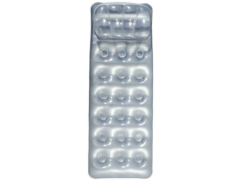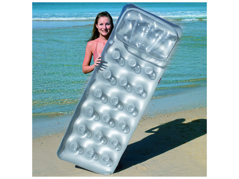 Ezüstszínű, átlátszó poharas matrac a forró nyári napokra! A Poharas matracágy igazi kényelmes pihenést biztosít akár a medence közepén is. A matracot biztonsági szelepen keresztül tudod felfújni, a matrac nagyon erős, előre tesztelt műanyagból készült. Felfújt méretek: 188 x 71 cm.