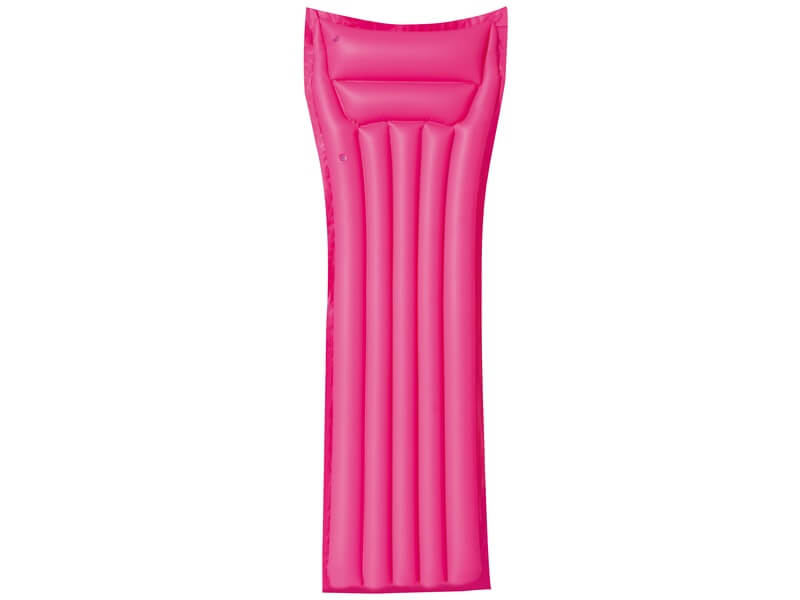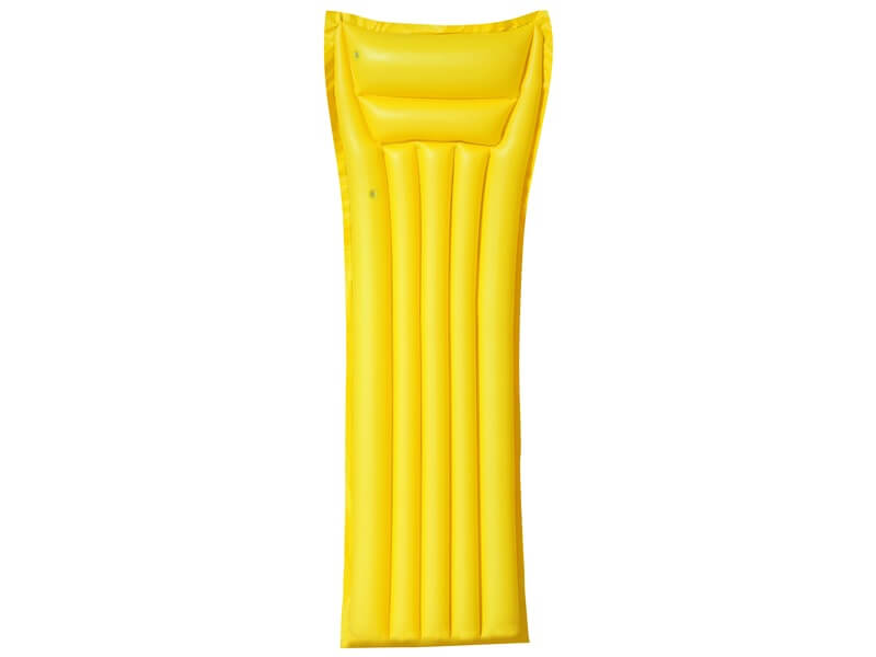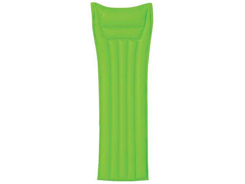 Pihend ki a fáradalmakat a forró napokon a medencében! Az egyszínű strand matrac egy hosszúkás, sárga, rózsaszín, zöld vagy kék színű matrac, ami puha PVC-ből készült. A matrac biztonsági szeleppel fújható fel, a fejtámla rész két légkamrára van osztva. A matrac hűvösebbé teszi a kánikulai napokat, a készlet egy öntapadós javítófoltot is tartalmaz. Felfújt méretek: 183 x 69 cm. A játékok külön kaphatóak.