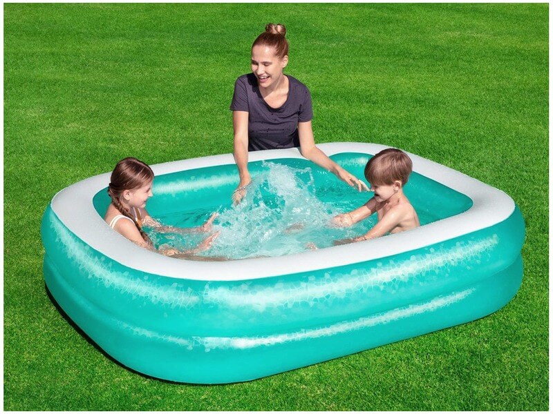 Az egész család lubickolhat a szögletes családi medencében! A Családi medence akár két felnőttnek és gyereknek is jó a pancsoláshoz a nagy melegben. A nagy medence több kamrás, biztonsági szeleppel van felszerelve, könnyen felfújható és leereszthető. A medence erős PVC-ből készült, nagyon tartós, ellenáll az időjárásnak. A készlet egy erős, öntapadó javítófoltot is tartalmaz. Felfújt méretek: 200 x 146 x 48 cm.