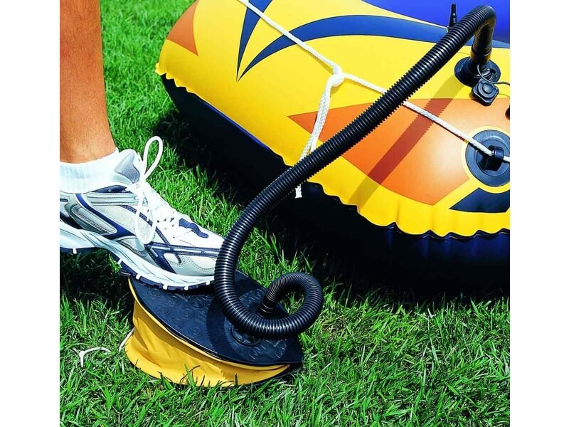 Nem kell szájjal felfújnod a strandjátékokat az Air Step nagy lábpumpával! A pumpa lábbal taposható, minden nyomással levegőt juttat a biztonsági szelepen át a strandcikkbe. A pumpával pillanatok alatt fel lehet fújni a strandlabdát és a matracokat is. Méretek: 28 x 19 cm.