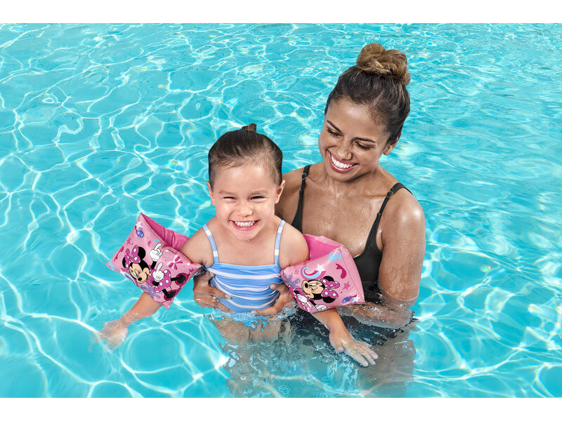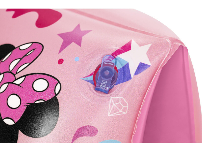 A biztonságos úszáshoz jól jön a Minnie egérrel díszített karúszó! A Minnie egér karúszó fent tartja a gyereket a vízen, és nagyon hasznos, amikor elkezdi az úszás tanulását. A karúszót könnyen fel tudod fújni a biztonsági szeleppel, a karúszón Walt Disney leghíresebb egérlányát, Minnie-t ábrázolja. Felfújt méretek: 23 x 15 cm.