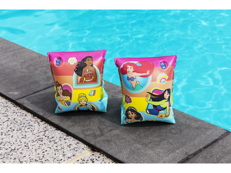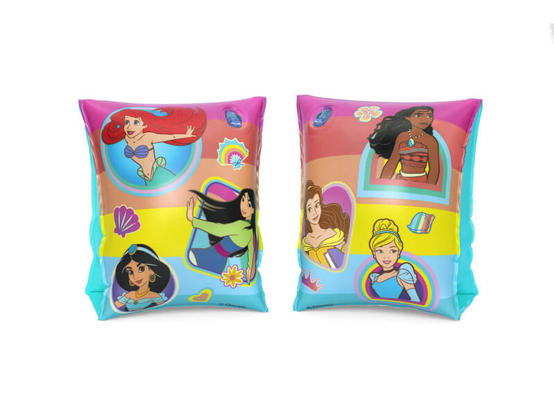 Tanulj meg úszni a Disney hercegnőkkel! A rózsaszín, felfújható karúszók segítenek, hogy megtanuld az úszás alapjait, és ne süllyedj el a medencében. A Disney hercegnők karúszó biztonsági szeleppel van felszerelve, amin keresztül egy-két fújással fel tudod tölteni levegővel. Felfújt méretek: 23 x 15 cm.