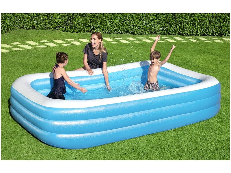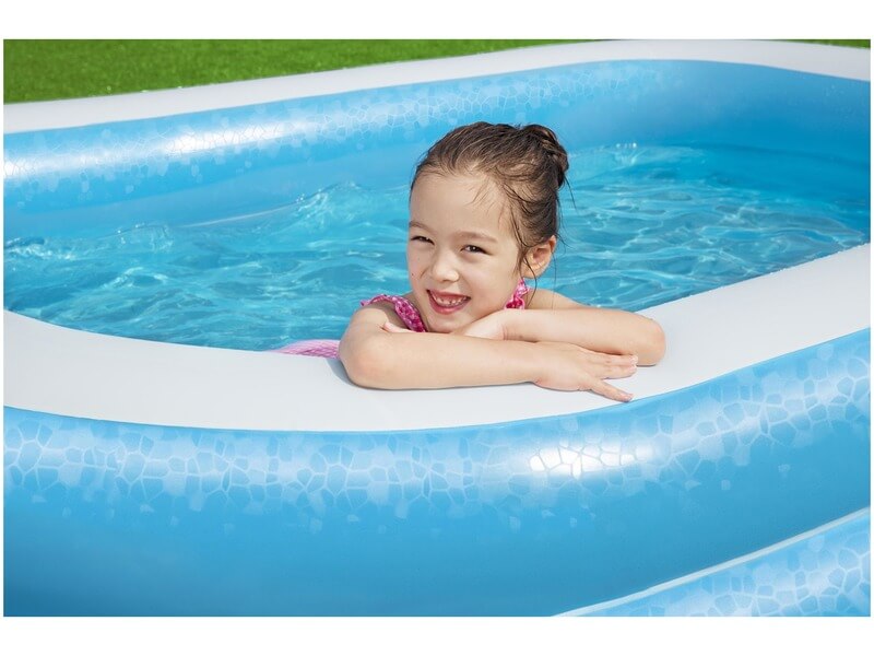 Az egész család pancsolhat a szögletes családi medencében! A Szögletes medence akár két felnőttnek és gyereknek is jó a pancsoláshoz a nagy melegben. A nagy medence több kamrás, biztonsági szeleppel van felszerelve, könnyen felfújható és leereszthető. A medence erős PVC-ből készült, nagyon tartós, ellenáll az időjárásnak. A készlet egy erős, öntapadó javítófoltot is tartalmaz. Felfújt méretek: 262 x 175 x 51 cm.