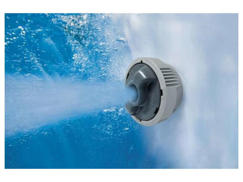A masszázsmedence egy gombnyomással felfújható, és vízfeltöltés után azonnal használható. Kül- és beltéren is fürödhet benne. Egyszerre 2-4 fő kényeztetésére alkalmas. A belseje puha, hőszigetelt borítású, kellemes tapintású, elegáns mozaikmintával.