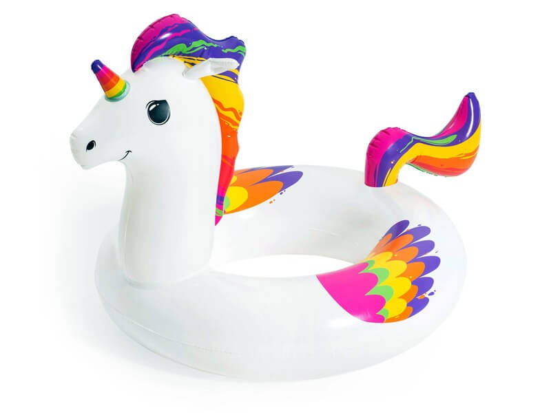 Úsztasd meg kedvenc egyszarvúdat! Az Unikornis úszógumival végre nem csak a parton, de bent a vízben is játszhatsz. Fújd hát fel a gumit, és csobbanj a habokba! De vigyázz, lehet, hogy a pegazussal való közös úszásodat le fogja lassítani az egyik barátod a paci farkába való kapaszkodásával! Az Unikornis úszógumi méretei: 119 x 91 cm.