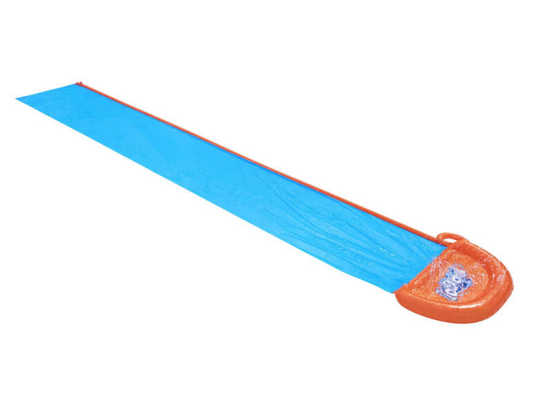 Csatlakoztasd a Bestway SINGLE SLIDE vízi csúszkát a kerti tömlőhöz adapter segítségével, és indulhat is a menet. A majdnem öt méter hosszú csúszka ideális választás a véget nem érő mókára a barátaiddal. Ki jut tovább? Ki ér gyorsabban a végére? A víz a csúszka végén lévő medencébe folyik. A beépített permetezők kaszkád hatást hoznak létre és nedvesen tartják a pályát.