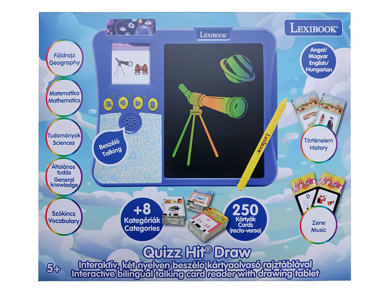 - Két nyelv: A rajztábla magyar és angol nyelven is működik, így a gyerekek könnyen elsajátíthatják a két nyelvet.
