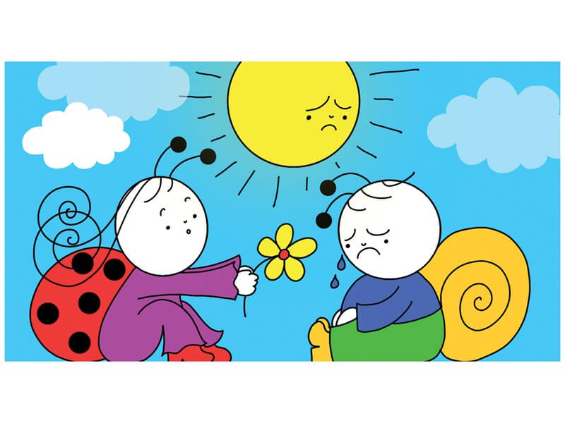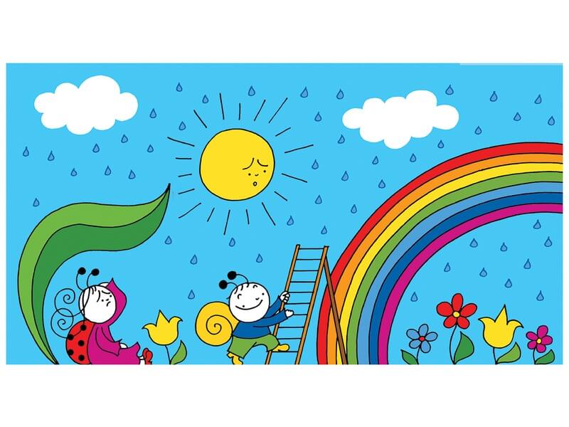 Bogyó, a csigafiú és Babóca, a katicalány kalandja a szivárvánnyal. Bogyó szomorúan veszi tudomásul, hogy sajnos nem tud eljutni a szivárványra. De semmi baj, kis barátai Babóca, Baltazár és a többiek születésnapi bulival készülnek számára, és még egy szivárvány színű csúszdával is kedveskednek neki! Írta: Bartos Erika. Rajzolta: Bartos Erika. A diafilm kódja: N0400