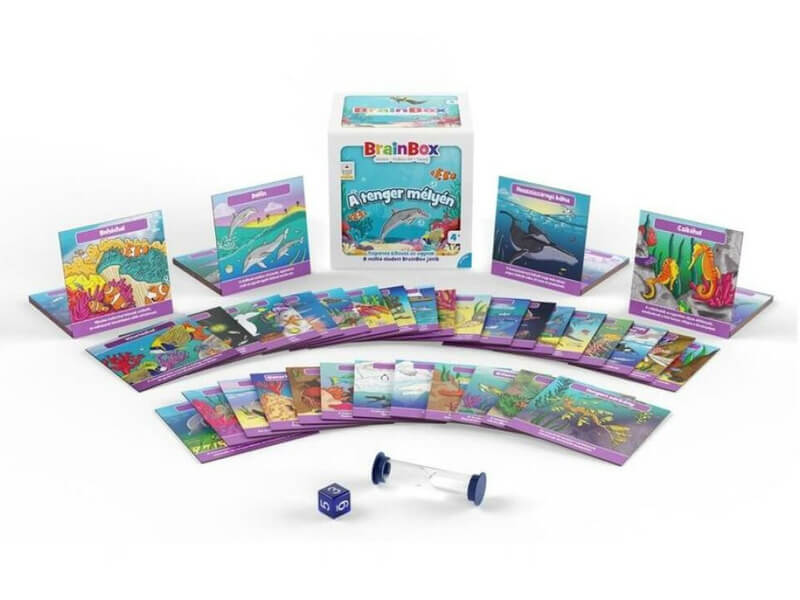 A Brainbox – A tenger mélyén társasjáték izgalmas és szórakoztató módon fejleszti a memóriát és a megfigyelőkészséget. A játék során a játékosoknak rövid idő alatt kell megjegyezniük a kártyákon szereplő tengeri élőlényeket és érdekességeket, majd kérdésekre válaszolniuk. Gyorsan tanulható, pörgős játék, amely szórakozás közben bővíti a tudást a víz alatti világról. Remek választás családi és baráti összejövetelekhez, hiszen minden korosztály számára élvezetes kihívást nyújt.