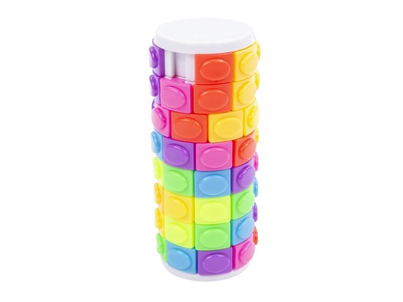 Forgasd a tornyot, amíg minden oszlop egyszínű nem lesz! A Bűvös henger logikai játék egy műanyagból készült toron, amin rengeteg színes négyzetet látsz. A torony sorait úgy kell forgatni, és eltolni, hogy minden oszlopnak csak egyforma színek legyenek. A játék fejleszti a gondolkodást, és a logikai készséget is.