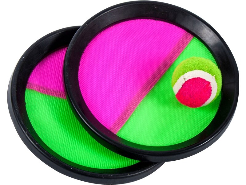 El tudod kapni a labdát a kicsi koronggal? A mini Catch ball labdajáték a szabadban játszható ügyességi játék, amit tenyérre erősíthető koronggal és tépőzáras labdával kell játszani. A játékosok egymásnak dobálják a labdát, amit a lappal kell elkapni, lehetőleg minél nagyobb távolságból. A Catch ball labdajáték fejleszti a mozgékonyságot, és vidám szórakozást biztosít a strandon is! A Catch ball labdajáték korongjainak átmérője: 16 cm.