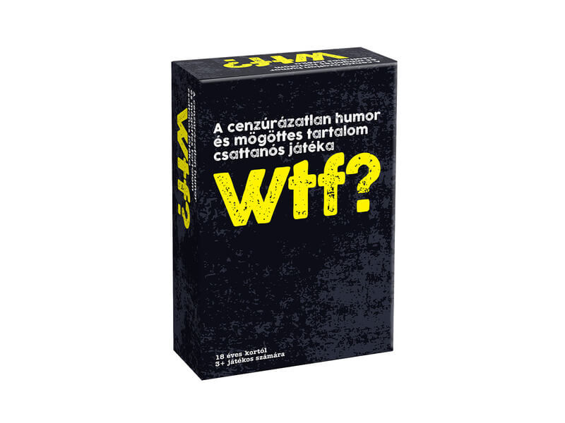 „Felpörgetnéd a bulit egy jó kis társassal? Itt a cenzúrázatlan humor egyértelmű királya: a WTF társasjáték. Reméljük fantáziátok kellően elrugaszkodott, mert csak így diadalmaskodhattok a játékban. Készítsd be a popcornt, hívd össze a haverokat és már indulhat is a fergeteges parti! Húzz egy kártyát, és válaszold meg a kérdést – nem baj, ha nem tudod a választ, elég, ha a többieket meggyőzöd az igazadról a WTF társasjátékban! Felháborító! Hallatlan! Borzalom! Hogy kell kikerülni a majomcsapdából? Kivel epreztél már? Mi az, amitől eléred az alfaszintet? Több, mint ezer botrányos és sokszor ártatlan kérdés, amikre míg a homokóra le nem pereg, válaszolnod kell! Helytelen felelet nincs, csak helytelenítő közönség: legyen hát mindig elég érved, amivel alátámasztod állításaid, hogy senki ne akarja megkérdőjelezni a szavaidat! Felhőtlen és cenzúrázatlan szórakozás az egész csapatnak! Tartalom: 288 kártya (1152 kérdéssel) játékszabály homokóra dobókocka”