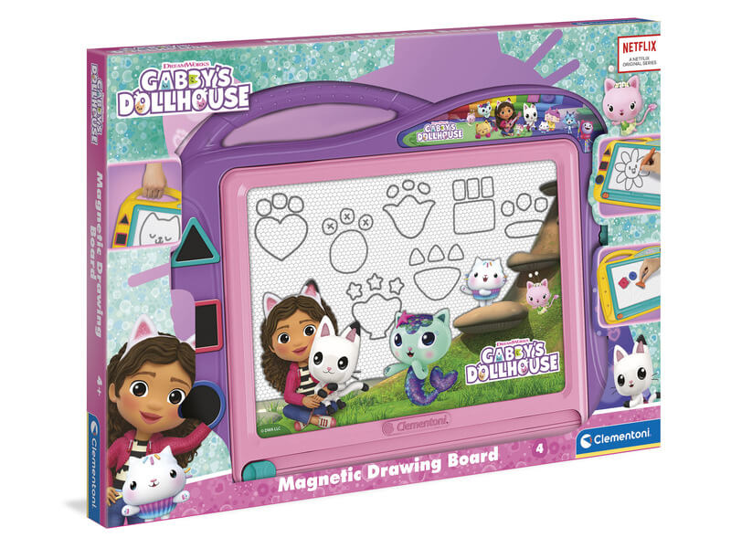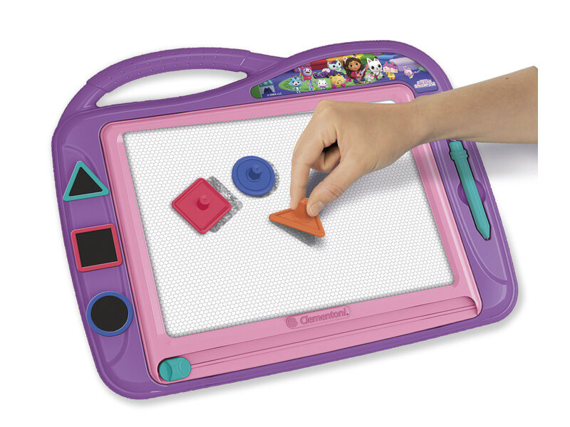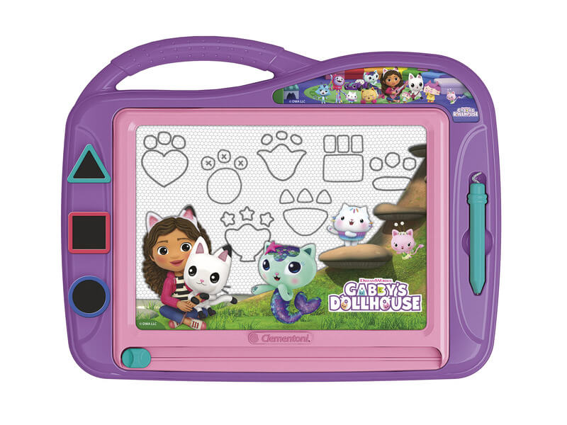 Egy speciális „Gabi babaháza” témájú rajztábla, amely lehetővé teszi a gyerekeknek, hogy rajzoljanak, töröljenek és újra rajzoljanak, remekül szórakozzanak. Három nyomdázót tartalmaz geometriai formákkal, amelyek gazdagíthatják a gyermek rajzát.