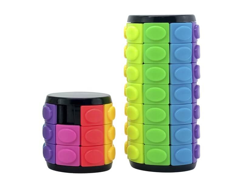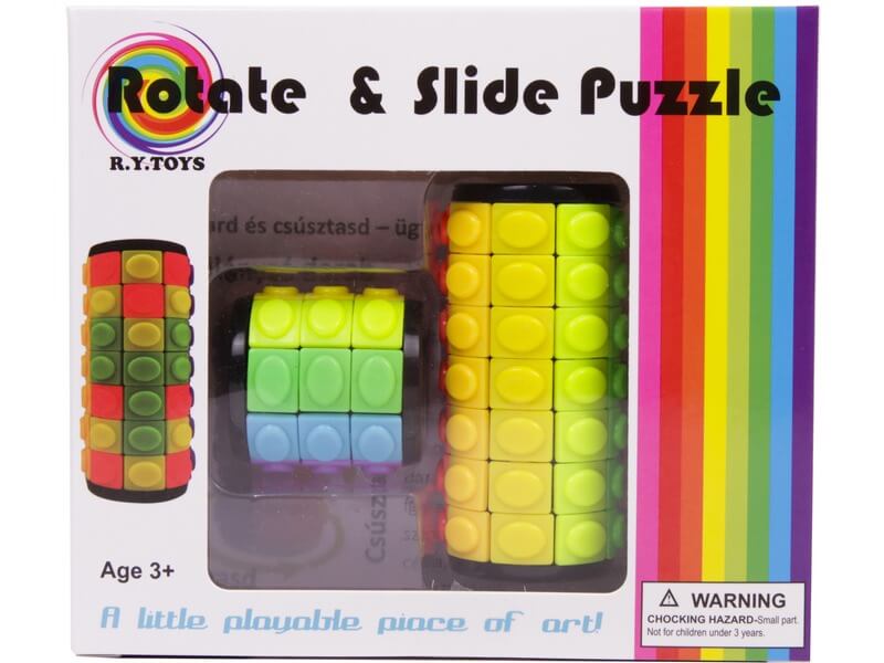 Tekerd és told a sorokat, hogy minden oszlopban ugyanolyan színű négyzetek legyenek! A Csavard és csúsztasd ügyességi játék egy logikát mozgató két darabos játék, ahol az összpontosításé a főszerep. A henger csavarható, és a hiányzó darabnál fel-le tudod mozgatni a torony négyzeteit. A feladat az, hogy minden oszlopban egyforma színű négyzetek legyenek.