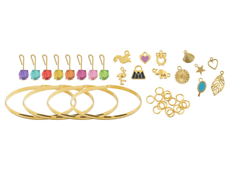 Tartalmaz: 4 db arany színű varázskarkötőt, 14 db charm.