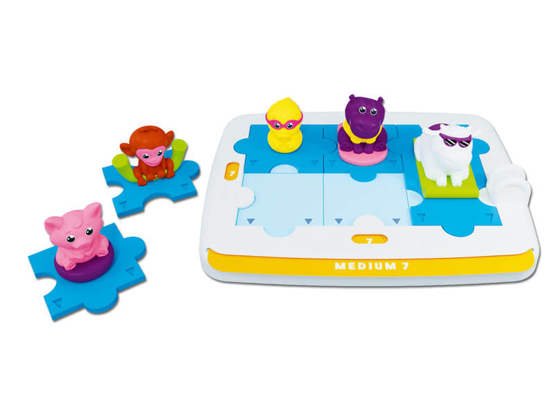 A malac és barátai – a kacsa, a majom és a víziló – együtt buliznak a medencében, a játékos feladata pedig, hogy a figurákat a megfelelő helyre ültesse.