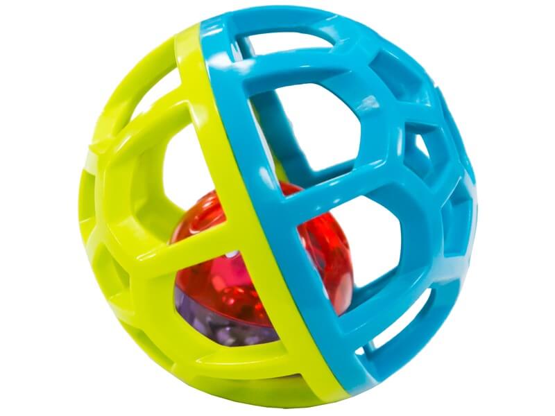 Könnyű szerkezetű színes labda, csörgő golyóval! A Csörgő bébi labda egy puha műanyag golyó, amit a baba csörgőként is tud használni. A labda belsejében lévő színes golyó zörgő hangokat ad ki magából, és miközben a baba mozgékonysága fejlődik, a labda a figyelmét is le tudja kötni. A Csörgő bébi labda átmérője: 10 cm. A játékok külön kaphatóak. A megjegyzésben kérjük tüntesd fel, hogy melyik változatot szeretnéd.