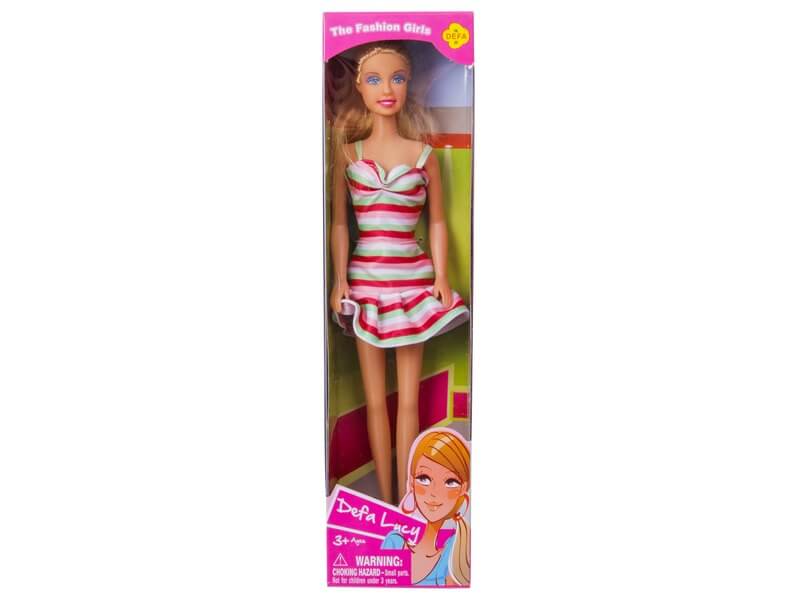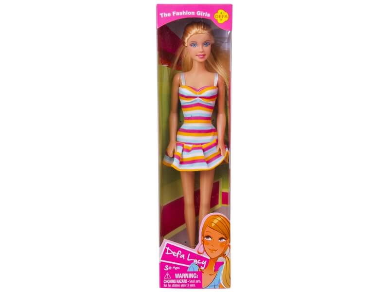 Szőke játékbaba, rövid, csíkos nyári ruhába öltöztetve! A Defa Lucy baba nyári ruhában egy alap játékbaba, amit bármilyen babás készlettel együtt tudsz használni. A baba könnyű ruhába van öltöztetve, hosszú haját ki tudod fésülni, vagy akár össze is tudod fogni. A Defa Lucy baba nyári ruhában kompatibilis már gyártóktól származó babaruhákkal, készletekkel is. Méret: 29 cm. A játékok külön kaphatóak. A megjegyzésben kérjük tüntesd fel, hogy melyik változatot szeretnéd!