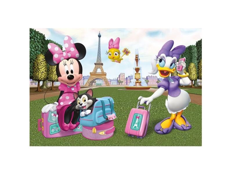 Minnie egér és Daisy kacsa utazása a divat fővárosába, puzzle képen megörökítve! A Minnie egér Párizsban 24 darabos puzzle Walt Disney két híres rajzfilmfiguráját ábrázolja, ahogy a francia fővárosban, Párizsban kirándulnak. A kirakós könnyen illeszthető, precíz mozaikdarabokból állítható össze, élénk színvilággal. A Minnie egér Párizsban 24 darabos puzzle kirakott méretei: 26 x 18 cm.