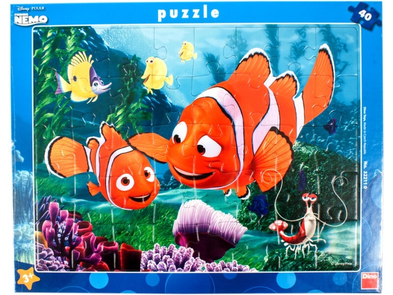 Rakd össze Némót, a kis bohóchalat puzzle darabokból! A Némó nyomában 40 darabos puzzle a kalandos kedvű bohóchalat, Némót és papáját ábrázolja, a tenger mélyén. A puzzle erős kartonból készült, szép nyomtatással. Kirakott méretek: 37 x 29 cm.