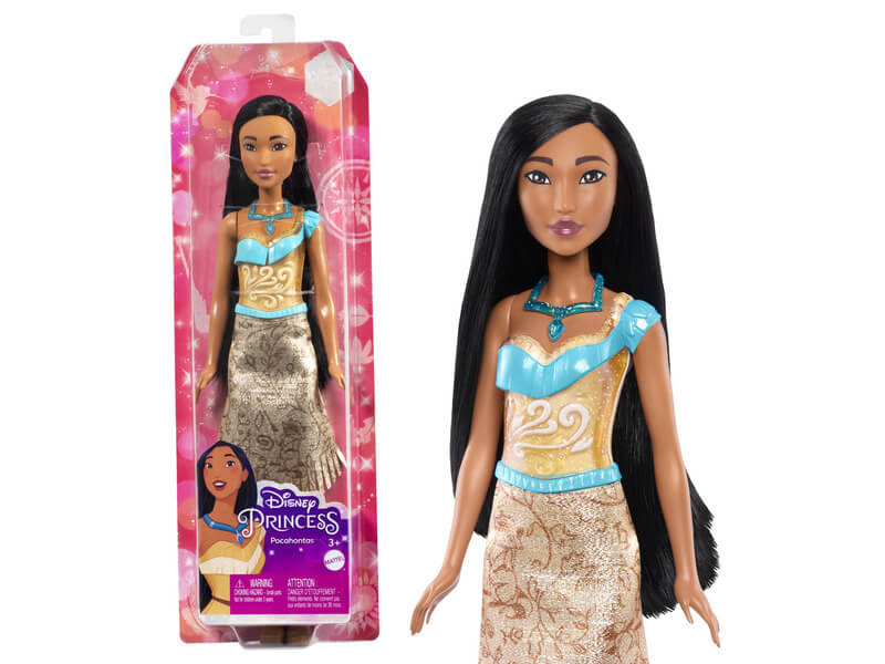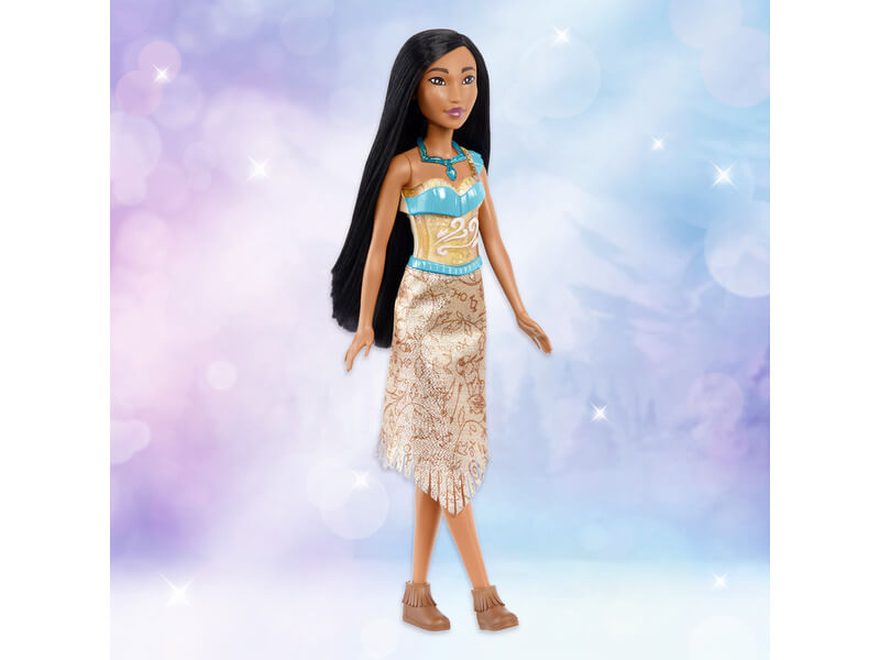A gyerekek most újra átélhetik a legszebb történeteket a Disney csillogó hercegnők babákkal. A Pocahontas rajzfilm merész és bátor hősnője ihlette baba mozgatható végtagjai és élethű filmbeli megjelenése varázslatossá tesz minden mesés történetet. Csodálatosan csillogó ruhája és izgalmas kiegészítői, a csinos cipők vagy a nyaklánc elbűvölő megjelenést kölcsönöznek neki.
