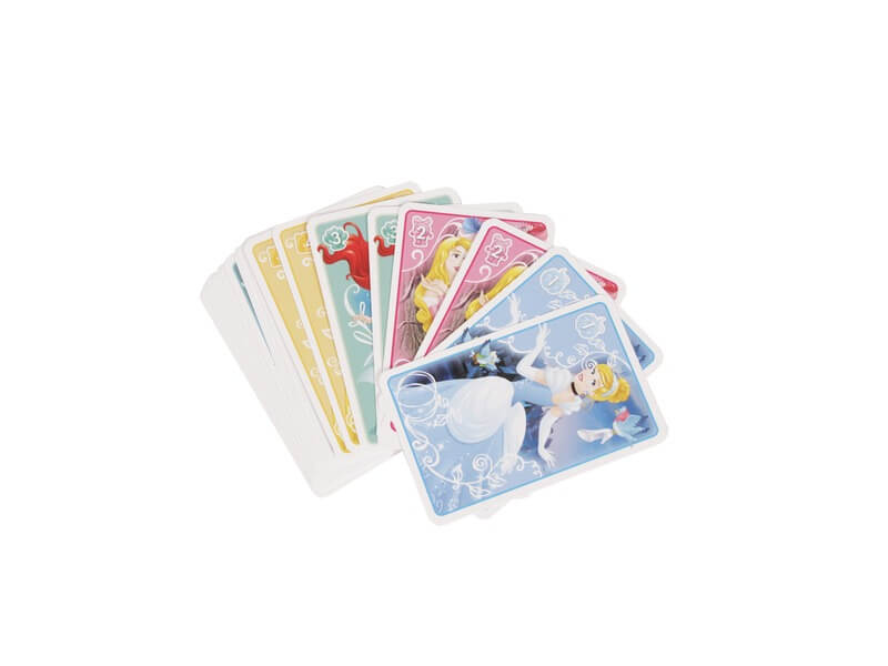 Ez a csodás Disney hercegnős kártyapakli két kártyajátékot is rejt magában. A gyönyörű hercegnők változatos és izgalmas kártyajátékra hívnak, tartalmas szórakozást és minőségi időt nyújtva az egész családnak. A kártyapakli segítségével játszhattok Fekete Pétert és memória játékot is. Mindkettőnél szükségetek lesz figyelemre, koncentrációra és egy jó adag szerencsére is. A Fekete Péter játék során minden játékosnak a mellette ülő játékostól kell húzni lapot, ha olyan szerencsés, hogy a kártya párja a kezében van, akkor lerakhatja mindkét kártyát a kezéből. Az veszít, akinél a végén az egyetlen pár nélküli lap marad. A paklival a klasszikus memóriakártya játék is játszható, mely fejleszti a koncentrációt, a megfigyelőkészséget és a figyelmet is. A kártyákat egymás mellé kell kirakni a hátlappal felfelé, egy körben két kártyát fedhet fel a soron következő. Ha sikerül eltalálni a két egyforma kártyát, megnyeri mindkettőt. A végén az nyer, aki a legtöbb kártyalapot tudja begyűjteni.