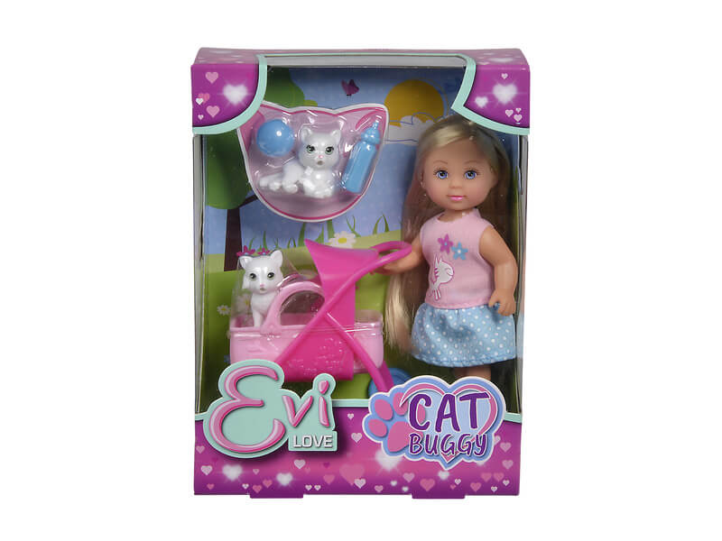 Evi 2 macskáját egy igazi macskakocsiban szállítja. Együtt mennek a parkba és ott labdával játszanak. Amikor eljön a szünet ideje, Évi egy üvegből tejet ad a macskáknak. A gyerekkor jó játéka a babázás, fejlesztik a képzelőerőt, a társas érzelmi készségeket, így az empátiát.