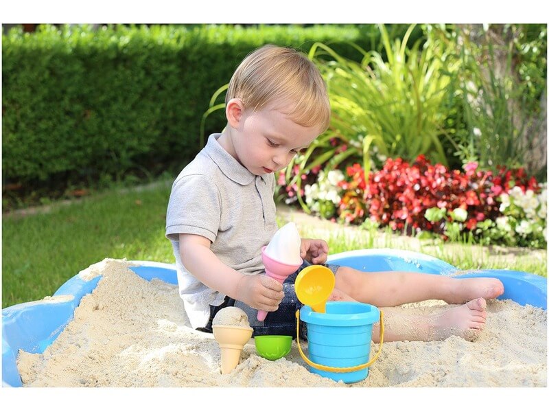 Készíts saját ízesítésű és formájú fagylaltokat! A készletben található egy vödör ami segítségével feltölthetted és kedvedre keverheted a fagylaltot. Egy kanál ami segítségével adagolhatod a fagylaltot. Két tölcsér, így meglepheted őket a legjobb fagylaltokkal. Továbbá tartalmaz a készlet két fedőt, mellyel kialakíthatod a fagylalt formáját igény szerint. A homokozás jótékony hatású a finommotorikára.