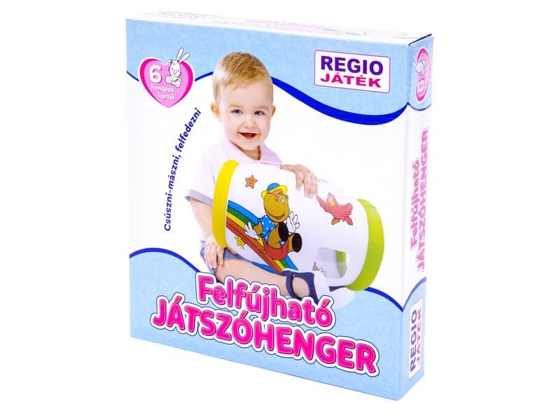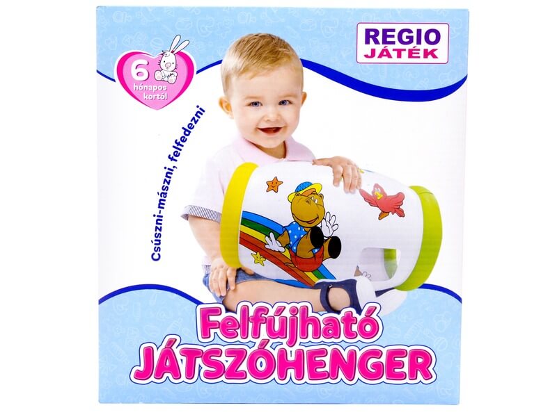 Görgethető henger, vidám állatmintával! A Felfújható bébi játszóhenger egy műanyagból készült henger alakú játék, amit a baba kedvére lökdöshet, guríthat. A henger megtanítja a babát a helyes mozgáskoordinációra, és segít neki felfedezni az őt körülvevő világot. A henger szelepen keresztül fújható fel, és jól bírja a strapát.