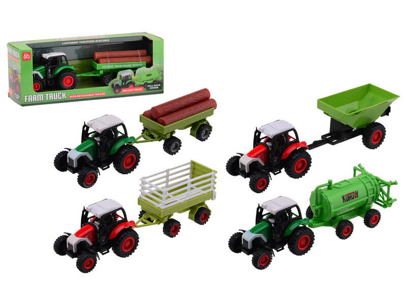 Dolgozz a mezőgazdaságban a fém utánfutós traktorral! A Fém traktor utánfutóval egy farmon használt munkagép, amivel terményeket tudsz szállítani, vagy arathatsz, vethetsz. A traktor műanyag kerekekkel készült, az utánfutót le tudod csatolni a traktorról, és egymás között cserélgetheted is őket. A Fém traktor utánfutóval mérete: 22 cm. A játékok külön kaphatóak.